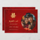 This Chinese wedding photo save the date card features a golden artistic double happiness symbol on a shimmering red floral background. Save the date text in an elegant script. Matching Chinese wedding products available.
