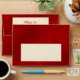 This traditional Chinese wedding envelope for invitations features a red double happiness symbol on a shimmering red background. Matching wedding suit available.