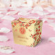 This Chinese wedding favor box features pretty red cherry blossom branches, cute butterflies and a red double happiness symbol on a golden background. Beautiful red white and gold box with bride and groom names and thank you words in an elegant handwritten script.