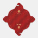 This Chinese wedding favor box features a gold artistic double happiness symbol on a shimmering red background. Beautiful red white and gold box with bride and groom names and thank you words in an elegant handwritten script.