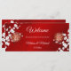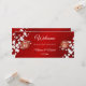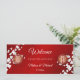 This Chinese wedding seating chart header features pretty white cherry blossoms and gold double happiness symbols on a shimmering ruby red background. Matching seating charts available.