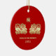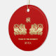 Red and Gold Foil design Chinese Year of the Monkey Gift Ceramic Ornaments. Chinese characters on the design are a Monkey sign in the Chinese Zodiac and one of the most common contemporary greeting for Chinese New Year literary translated as "a Happy New Year". Matching cards and gifts available in the Chinese New Year / Year of the Monkey Category of our store.