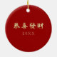 Happy Chinese Year of the Ox. Traditional Asian Ox design Chinese Year of the Ox Gift Ceramic Ornaments with personalized year and text. Chinese characters on the design are an Ox sign in the Chinese Zodiac and one of the most common contemporary greeting for Chinese New Year literally translated as "a Happy New Year". Matching cards, gifts and traditional red envelopes and other products available in the Chinese New Year | Year of the Ox Category of our store.