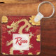 Chinese yellow Dragon with yellow peonies on red background + yellow Chinese dragon ideogram and yellow "Year of the Dragon". Design on Square keychain with monogram or first name to personalize in back. Matching greeting card, postcard, sticker and more...