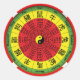 Wheel depicting the Chinese zodiac signs and the years they pertain to, in colors of red, green and yellow