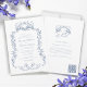 Elegant Chinoiserie wedding invitations featuring a romantic blue bridge and swans motif. This all-in-one design sets a timeless and sophisticated tone for your special day, perfect for couples seeking a classic yet unique celebration. The delicate floral wreath encloses your wedding details, while the accompanying RSVP card and QR code streamline guest communication and provide access to your wedding website. Announce your upcoming marriage with this beautifully illustrated stationery, ensuring every guest feels informed and cherished. Make your wedding planning seamless with this exquisite blue and white wedding invitation suite.