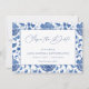 A smart blue and white chinoiserie pattern wedding Save The Date design. The pattern was handpainted by me in watercolors before being scanned into digital form. It is based on a pattern seen on antique ginger jars.
