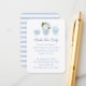 Timeless watercolor flowers in a preppy ginger jar vase for this baby shower enclosure card design, which also features pale blue and white stripes on the reverse (you can change the pale blue to any other color by changing the background color in the design tool).