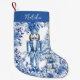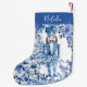 This unique christmas stocking features a beautiful Chinoiserie-inspired blue and white floral wreath, accented with a delightful nutcracker soldier. Personalize it easily and quickly by clicking the Edit Using Design Tool button.