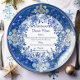 Elevate your holiday dining experience with our exquisite round menu card. This elegant card features a Chinoiserie-inspired blue and white floral wreath, beautifully accented with charming nutcracker soldiers. Perfect for formal dinners and festive gatherings, the front of the card allows you to edit and personalize the menu details, while the back provides ample space for additional text, such as special messages, event information or more menu details. Combining timeless sophistication with practical functionality, it adds a touch of refinement to any table setting. Make your holiday meals memorable with this stylish and customizable menu card. (c) The Happy Cat Studio