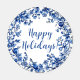 Chinoiserie Blue White Holly Leaf Personalized Coaster Set