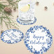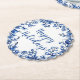 Chinoiserie Blue White Holly Leaf Personalized Paper Coaster