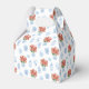 Stylish favor boxes with a pattern made up from ginger jar vases, one of which is planted with a lovely red poinsettia.