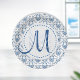 Chinoiserie, delft blue and white tiny flower basket pattern with classic blue customizable text. Template at right for your convenience.