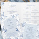 Chinoiserie wedding program with elegant blue and white vintage botanical design. This folded program card is fully editable and includes your order of service, wedding day timeline, wedding party names and a word of thanks. Delicate and romantic floral, with branches of roses and birds of nature and a color palette in shades of blue inspired by rustic french toile, chic chinoiserie porcelain, delft pottery, the georgian, regency and victorian eras. For co-ordinating invitations, stationery, games and day-of-event decor, please browse my Chinoiserie Wedding Collection or message me to add any additional items you need.