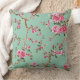 Looking for a pop of color and pattern for your home? This gorgeous chinoiserie floral pillow is perfect! The mint green background is accented with pretty pink floral branches in a mural-style design. It's perfect for adding a touch of French style to any room.