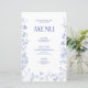 Introducing our glamorous Chinoiserie French Blue Victorian Wedding Menu! Elegantly crafted with a hand-drawn design and featuring exquisite blue garden flowers, buzzing bees, and delicate butterflies, this is a timeless menu for your special day that won’t soon be forgotten. Perfectly crafted to match the style of even the most sophisticated occasions yet effortless enough to match any casual ceremony as well. And taking it over the top? Personalize your wedding menu details in beautiful modern calligraphy - an easy way to make sure your guests will remember just how special they are to you on this special day. Whether celebrating a formal wedding or simply getting married in bare feet among wildflowers, let us help make beautiful memories with our Chinoiserie French Blue Victorian Wedding Menu! View suite here: https://www.zazzle.com/collections/chinoiserie_french_blue_victorian_floral_wedding-119923315057251575 Contact designer for matching products. Copyright Surridge Design Co. for Elegant Invites, all rights reserved.