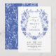 Chinoiserie Garden Delft Blue Floral Crest Wedding Invitation