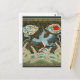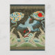 Chinoiserie Golden Crane Bird & Sea Wave Pattern Postcard