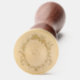 Before the wax hardens, gently and evenly press the wax seal stamp into the melted wax, ensuring it's centered.