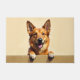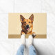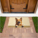 The soft golden wheat background enhances its natural tones, creating a warm and welcoming look for any entryway. Designed with extra space at the top and bottom, it allows easy personalization with names, welcome messages, or custom text—perfect for unique dog-themed doormats and thoughtful gifts.