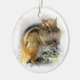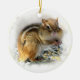 This adorable holiday decoration will look great hanging from your Christmas tree! A cute little chipmunk is stuffing his cheeks as fast as he can on a snowy day.