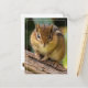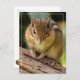 A cute chipmunk stares intently at the camera from a fallen tree branch..