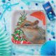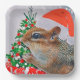Chipmunk with Christmas Hat in Front of Tree Paper Plates
