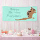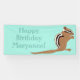Throw the perfect party for animal lovers with this chipmunk-themed birthday party banner. This party decor features a realistic style illustration of a cute chipmunk in light brown set against a mint green background.