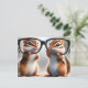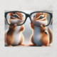 Two adorable chipmunks are playfully holding up a pair of oversized glasses for eye doctor appointment reminder