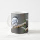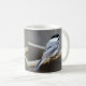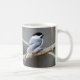 Chipper chickadee decorates ceramic mug. Classy cheerful songbird for lovely home decor.