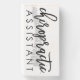 This chiropractic assistant design features script and block text with a light gray lateral spine element in the background.