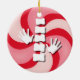 Lightweight, smooth, pure white ornament with nice sheen. Perfect size to be seen from across the room ... and to attract closer inspection! Price was great for ordering enough for the whole family! Clear, bold black design just as requested. Matches the order exactly. Just so nice!