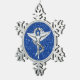 Design features metallic-look chiropractic emblem on a royal blue faux glitter look background.