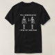 Two skeletons standing side by side; one is holding the backbone of the other who stares in disbelief. The caption reads, "I'm a chiropractor & I've got your back. Funny tee for the chiropractor in your life.