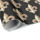 Chiseled Gold Gradient Heraldic Fleur de lis Black Wrapping Paper