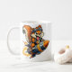 Start your day with energy and adventure! This fun mug features Chispa the squirrel, an adorable and mischievous squirrel riding a blazing rocket through space. With her pilot goggles and fearless attitude, Chispa is ready to launch your morning coffee into orbit.