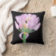 The simple yet dramatic image on this 16” Throw Pillow is an original photograph by ZoeSPEAK of a flowering chives plant. The closeup photo features one pale lavender flower atop a light bluish green tubular stem. The dark background shows off the beauty of this delicious herb.