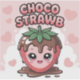 A new cutey cartoon character design. A superbly kawaii strawberry character is designed covered in melty dripping chocolate from the top, with some cute pinky hearts at the background. A nice typography featuring the phrase "CHOCO STRAWB" is added in a perfect font and style.