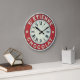 Vintage wall clock image in red and white.