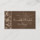 This business card design is sure to attract attention and help you stand out in the crowd. The background is chocolate brown and there is a beautiful floral graphic in champange cream giving it an elegant look. Perfect for any business but especially great for bridal salon, wedding planning, event planning, catering, nail salon, spa, jewelry, cosmetologist, fashion, beauty consultant, or any time you would like an elegant touch. Add your information and it is ready to go!