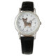 Destei's original cartoon illustration of a chocolate and tan smooth coat Chihuahua breed dog. The clock face is made of black numbers.