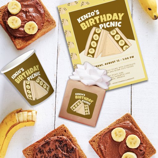Chocolate Banana Sandwich Birthday Picnic Party Invitation