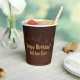 Decadent, chocolate birthday cake frosting decorated with sprinkles and whipped caramel topping! Shown here on a paper party cup. Personalize with any text and change the Happy Birthday message if desired. It's a delicious design for chocolate cake lovers! Find more party supplies with this design in my store Paper Crow.