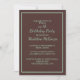 Invite guests to celebrate with this rich and refreshing chocolate brown and mint green birthday party invitation. The deep brown background paired with soft mint accents creates a stylish contrast that feels both grounded and modern. A playful striped pattern on the back adds visual interest, while the combination of elegant serif and handwritten script fonts offers a refined yet approachable vibe. Great for milestone birthdays, adult celebrations, or minimalist party themes.