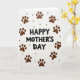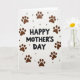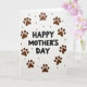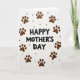 This card features a bright white background with “HAPPY MOTHER’S DAY” centered in thick, hand-drawn-looking black lettering that feels direct and caring ❤️. Around the message, a ring of warm chocolate-brown paw prints forms a gentle circle, like a loyal companion padding close to keep the words safe. The paw marks vary slightly in texture and shape, adding the sense of real footsteps and affectionate closeness. Tucked between several prints are small, glossy dark-brown dots that resemble tiny treats or beads, adding a cozy, gift-like detail. The strong contrast between the black text and earthy browns keeps your eyes on the center while the circular layout creates a soft, hugging frame. The overall look suggests friendship and devotion through the way the paw prints “gather” around the greeting, as if an animal friend is offering love in a simple, sweet way 🌼. The text sits squarely in the middle, with the paw-print wreath evenly spaced around it and the little dark-brown spheres dotted between prints.