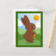 This cute little bunny is out for a stroll in the sunshine and fresh Spring air with a candy corn carrot for a snack.