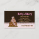 Fun whimsical business card done in tan, pink and dark brown. Cute graphics of a fancy cake decorates the left side of this sweet business card. Perfect for a bakery shop, party shop, or an independent custom baker. Customize the text fields to personalize for yourself or your shop.