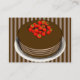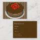 Business cards featuring a chocolate cake with strawberries illustration on a striped background on one side and the reverse has customizable information areas.