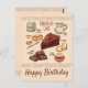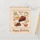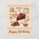 Chocolate Cake Recipe Birthday Postcard - A beautifully hand drawn ingredient list for chocolate cake adorns the front of this card with Happy Birthday on the bottom. The back of the postcard has a little border and the same color as the front.